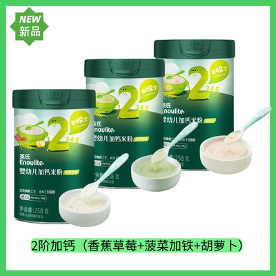 英氏 2阶 加钙婴幼儿米粉 3口味组合(香蕉草莓+菠菜加铁+胡萝卜)258g*3罐