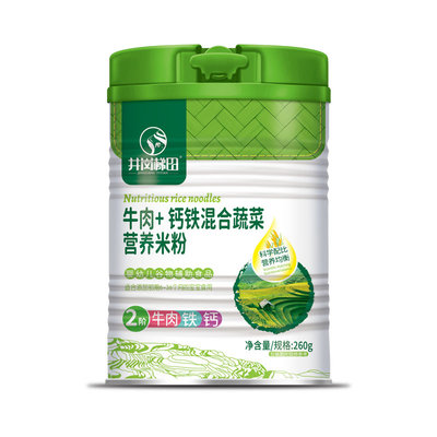 井岗梯田 2阶 牛肉+ 钙铁混合蔬菜营养米粉 260g/罐(7-36个月)