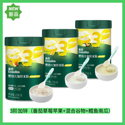 英氏 3阶 加锌婴幼儿米粉 3口味组合(番茄草莓苹果+混合谷物+鳕鱼南瓜)258g*3罐