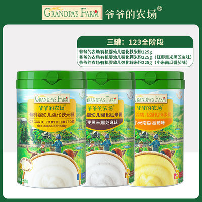 爷爷的农场 有机婴幼儿强化铁米粉 225g*3罐【1阶+2阶+3阶】(原味+红枣黑米黑芝麻味+小米南瓜番茄味)