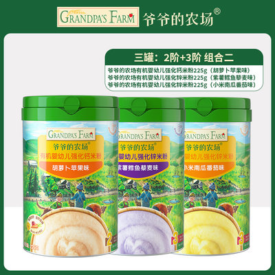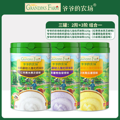 爷爷的农场 有机婴幼儿强化铁米粉 225g*3罐【2阶+3阶组合一】(红枣黑米黑芝麻味+紫薯鳕鱼藜麦味+小米南瓜番茄味)