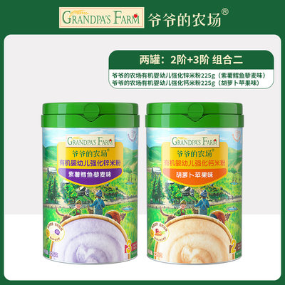 爷爷的农场 有机婴幼儿强化铁米粉 225g*2罐【2阶+3阶组合二】(胡萝卜苹果味+紫薯鳕鱼藜麦味)