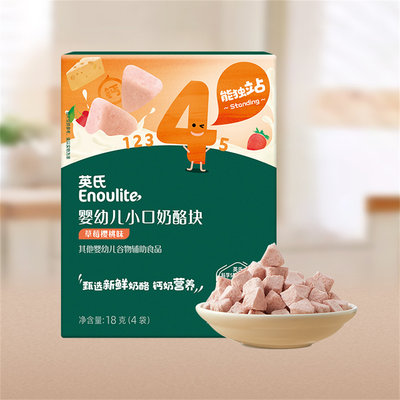 【买赠】英氏(Enoulite)小口奶酪块(草莓樱桃味) 18g/盒*2盒【赠点赞泡泡饼干20g*2】