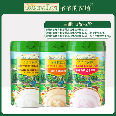 爷爷的农场 有机婴幼儿强化铁米粉 225g*3罐【1阶+2阶】(原味+胡萝卜苹果味+多谷物缤纷水果味)