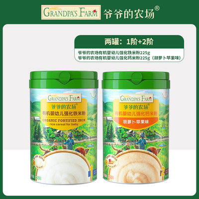 爷爷的农场 有机婴幼儿强化铁米粉 225g*2罐【1阶+2阶】(原味+胡萝卜苹果味)