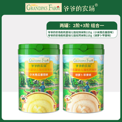 爷爷的农场 有机婴幼儿强化铁米粉 225g*2罐【2阶+3阶组合一】(小米南瓜番茄味+胡萝卜苹果味)
