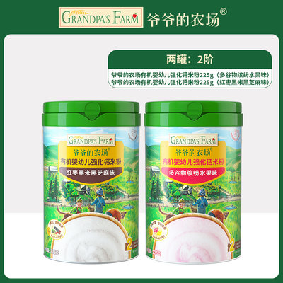 爷爷的农场 有机婴幼儿强化铁米粉 225g*2罐【2阶】(多谷物缤纷水果味+红枣黑米黑芝麻味)