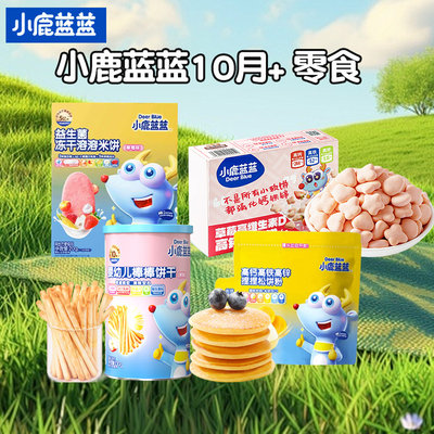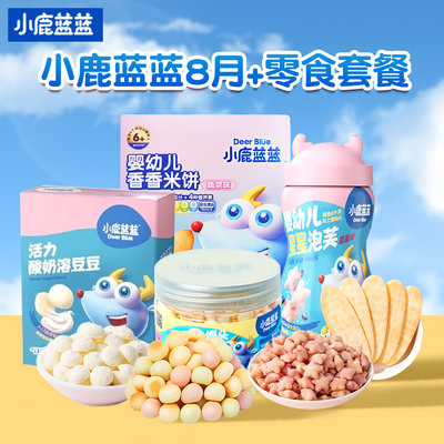 小鹿蓝蓝 6个月以上宝宝零食组合套餐(小鹿水果泥X3+磨牙棒x1盒+鲜虾泡芙条42gx1罐+香香米饼(原味)X1袋)