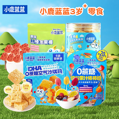 小鹿蓝蓝 36个月以上宝宝零食组合(果汁棒棒糖X1袋+小鹿蓝蓝山楂棒X1盒+奶酪爆米花x1罐+沙琪码x1)