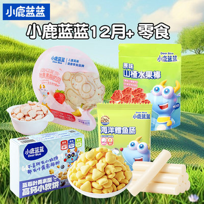 小鹿蓝蓝 12个月以上宝宝零食组合(蓝莓叶黄素酯高钙小软饼x1+山楂水果棒x1袋+鳕鱼肠x1袋+叶黄素酯奶贝x1袋)