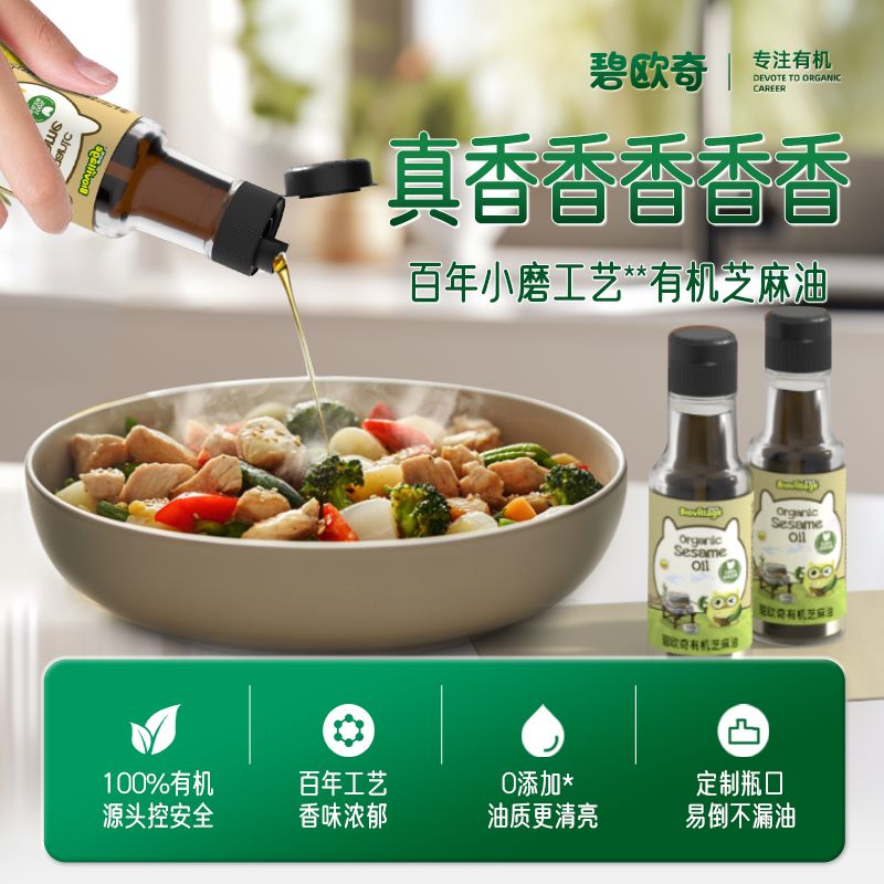 【有机的更健康】碧欧奇 有机芝麻食用小磨香油无添加儿童调味料
