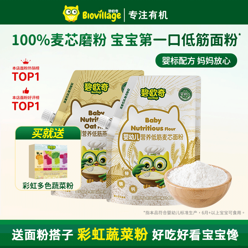 【买就送面粉搭子彩虹蔬菜粉】碧欧奇 营养低筋婴标双麦面粉
