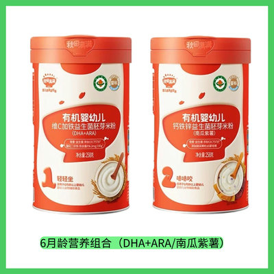 秋田满满 益生菌米粉2口味组合(DHA+ARA/南瓜紫薯)258g*2罐