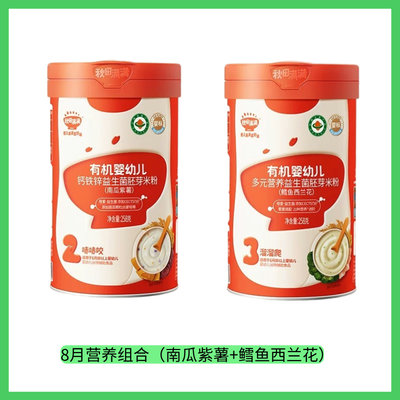 秋田满满 益生菌米粉2口味组合(南瓜紫薯+鳕鱼西兰花)258g*2罐