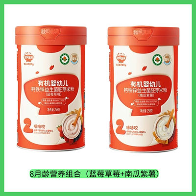秋田满满 益生菌米粉2口味组合(蓝莓草莓+南瓜紫薯)258g*2罐