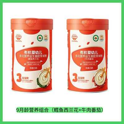 秋田满满 益生菌米粉2口味组合(鳕鱼西兰花+牛肉番茄)258g*2罐