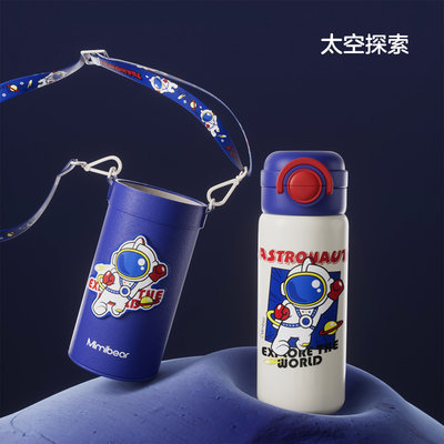 眯眯熊(Mimibear)双饮弹跳保温杯 蓝色太空探索 500ml 【送杯套、背带绳】