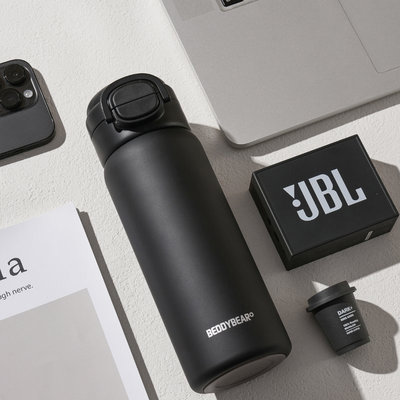 韩国 杯具熊(BEDDYBEAR)盛开双饮保温杯 长夜黑 550ml