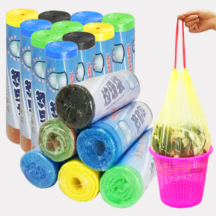熊诺抽绳束口垃圾袋厨房加厚卷装拉圾袋手提式收口一次性分类塑料袋