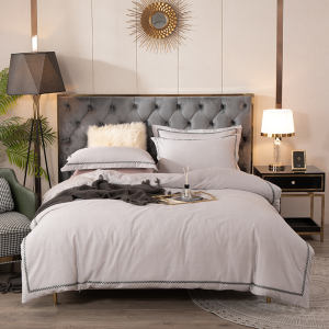SENFUNI/圣夫妮灰深灰加厚磨毛轻奢刺绣床品四件套200*230cm