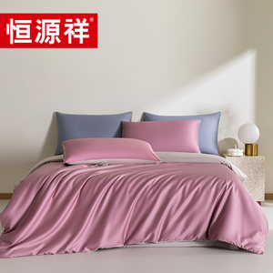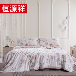 【顺丰配送】恒源祥春日落樱粉天丝夏被床品四件套200*230cm 填充克重:480g
