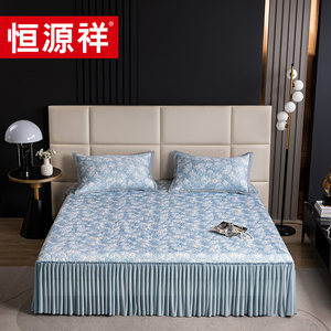 【顺丰配送】恒源祥床裙款双面凉感席三件套-玫瑰蓝203*215cm(预售,预计4月20日之后发货)