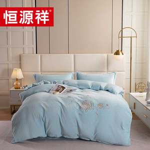 恒源祥绣花牛奶绒床品四件套200*230cm