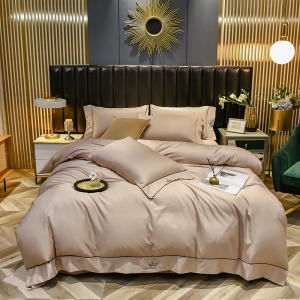 PLOVER/啄木鸟60S水洗真丝刺绣床品四件套-卡其色200*230cm