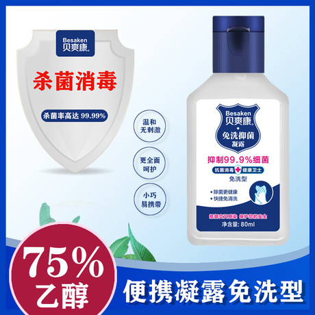 贝爽康75%酒精防病菌免洗手凝胶皮肤家用便携室内抗菌洗手液