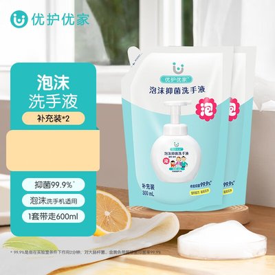 优护优家 泡沫抑菌洗手液补充装(柠檬香型)300ML*2袋