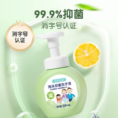 优护优家 泡沫抑菌洗手液(柠檬香型)330ml/瓶