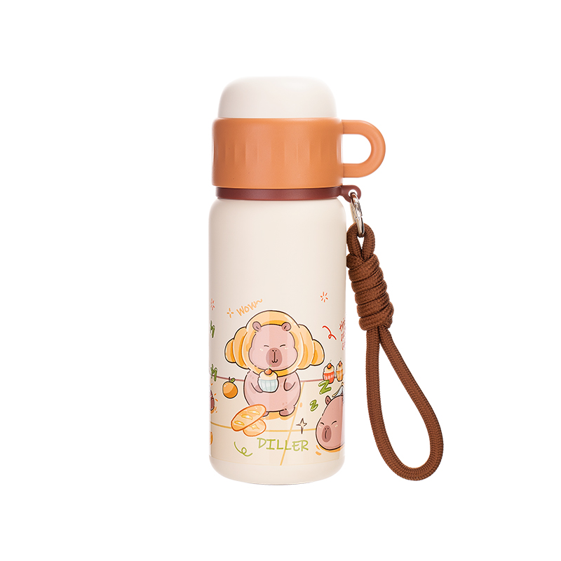 迪乐贝尔2024新款卡皮巴拉系列保温杯小众吸管杯倒水杯两用杯学生上学一杯两用水壶500ML