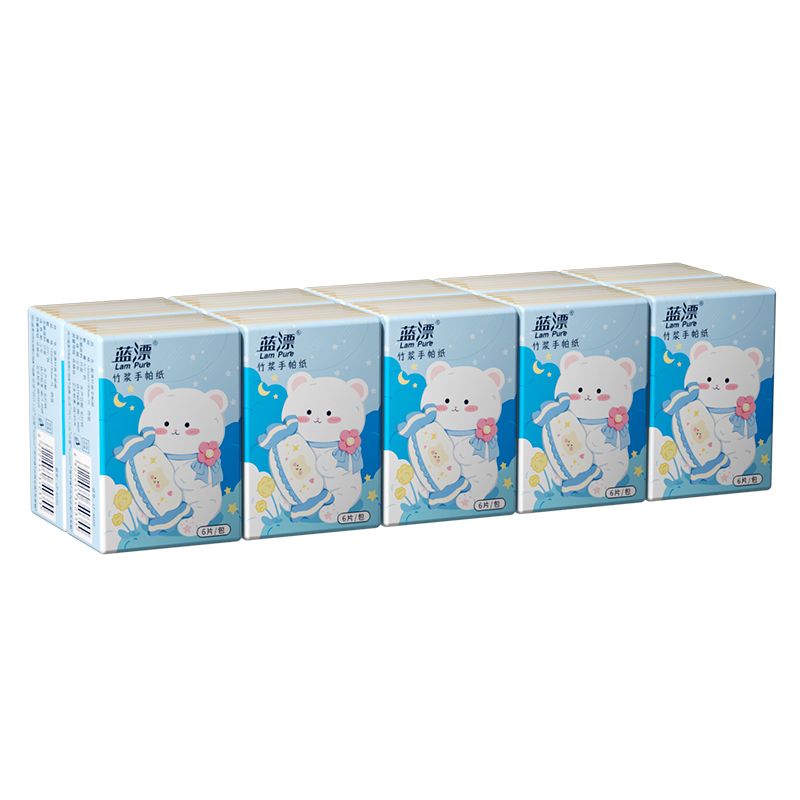 蓝漂竹浆本色手帕纸6片*10包LP-40355本色迷你手帕纸10包