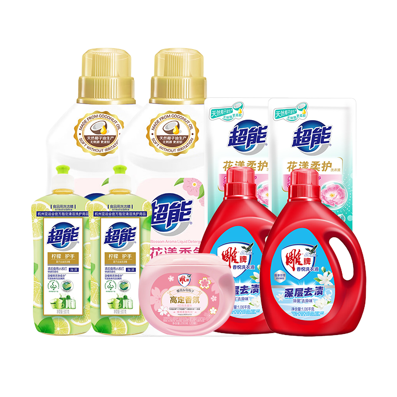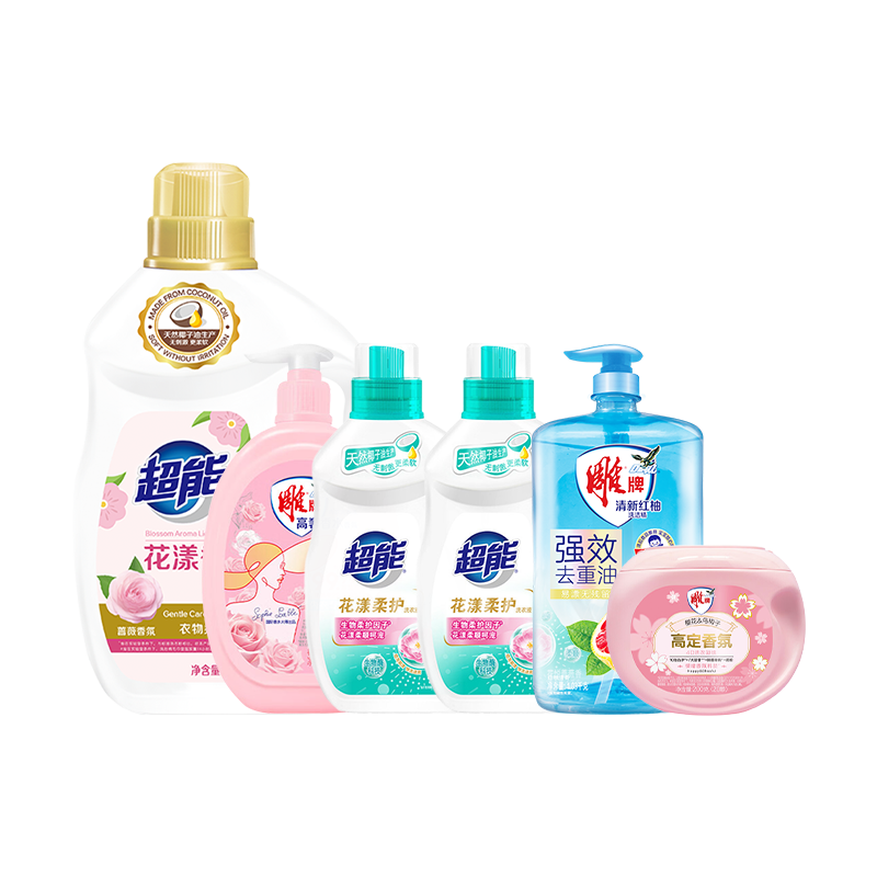 超能/雕牌 花漾香氛清洁洗护套装12828+516ml(超能花漾香氛洗衣液3.53kg+超能自天然洗衣液1kg+超能AP