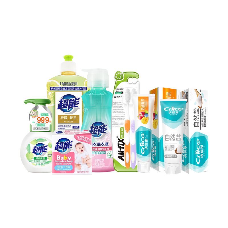 超能/纳爱斯 个人洗护组合1598g+2支(纳爱斯牙膏120克鲜果+120克盐白+超能内衣洗衣液480g+超能泡沫抑菌
