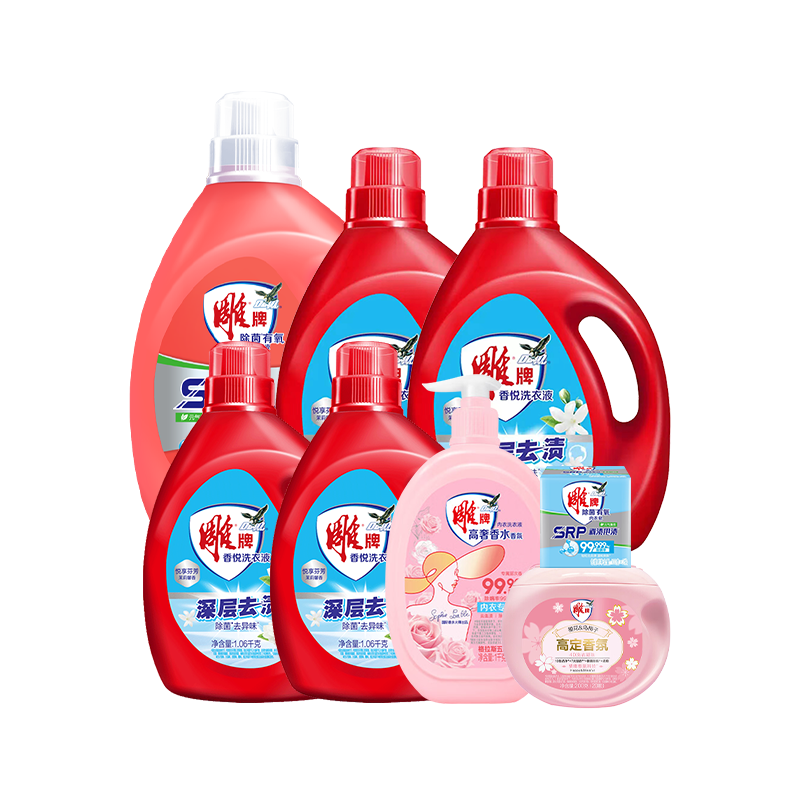 雕牌 洗衣组合10260g(雕牌除菌有氧洗衣液2.58kg+雕牌香悦洗衣液2.08kg*2+雕牌香悦洗衣液1.06kg*