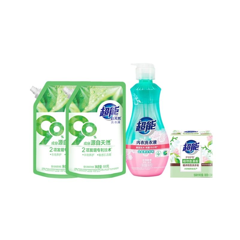 超能 洗衣组合2220g(超能自天然洗衣液(带出液口)500g*2+超能内衣洗衣液860g+超能植沐悦色洗衣皂180g*