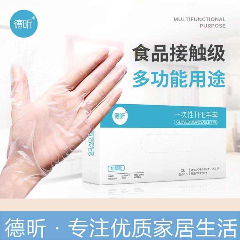 德昕一次性TPE手套食用防护防水防油洗碗餐饮加厚耐用盒装批发食品级手套