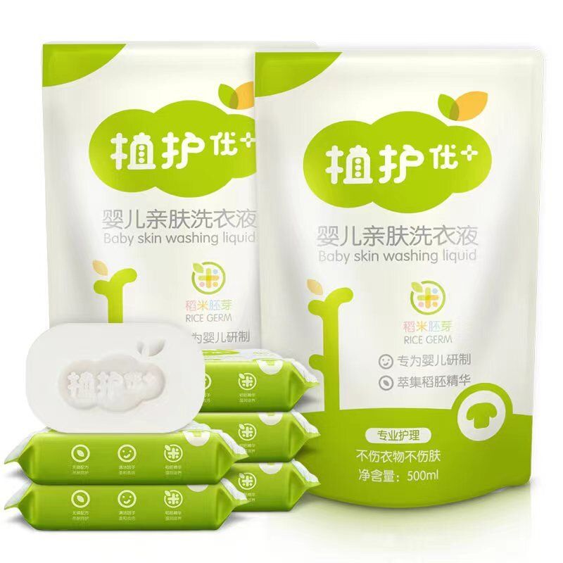 植护 优+ 婴儿亲肤洗衣组合套装(500g/袋*2+80g/块*5)