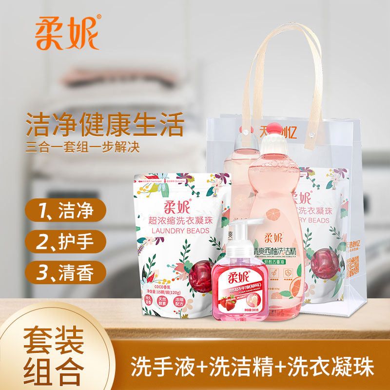 柔妮洗护套装大礼包洗衣凝珠洗手液洗洁精实用组合礼品出行家用1020g