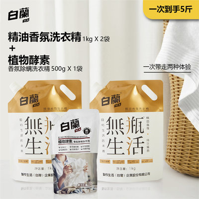 白兰 精油香氛洗衣精1kg×2袋+植物酵素香氛除螨洗衣精 500g*1袋