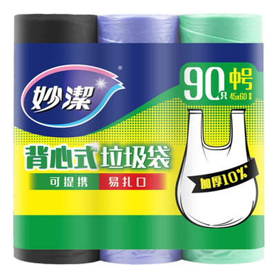 妙洁 背心式垃圾袋中号超值装 30只*3卷