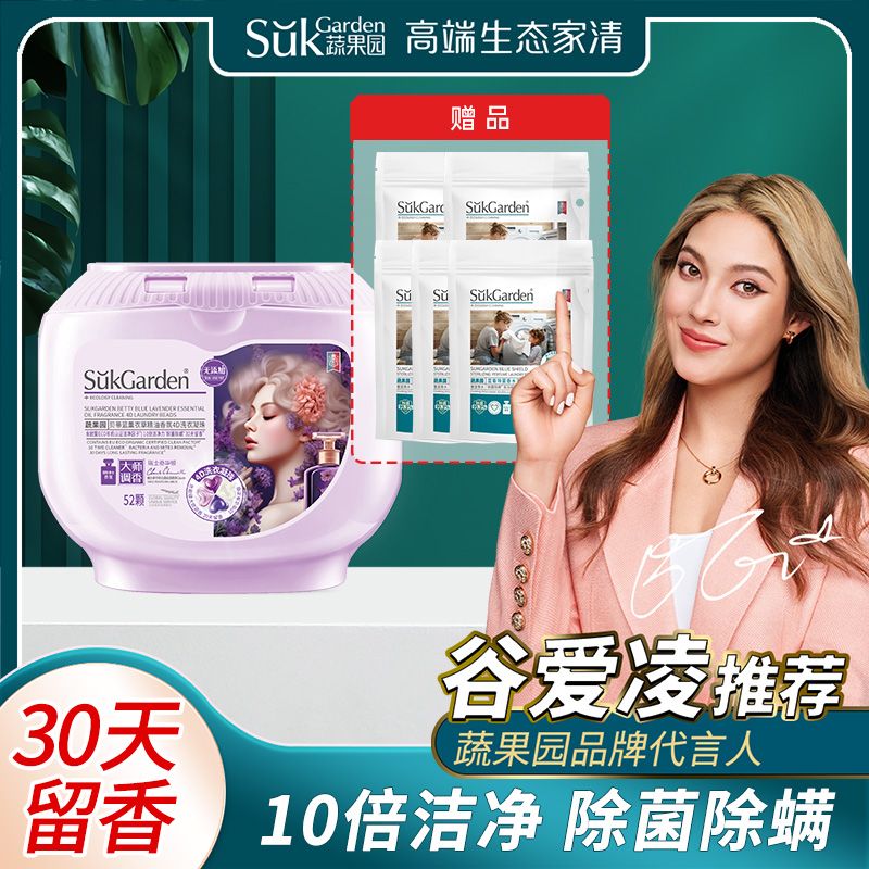 蔬果园贝蒂蓝薰衣草香氛4D洗衣凝珠(浓缩型)-10g*52颗*1盒+蔬果园蓝盾香水洗衣凝珠-8g*10颗(袋装)