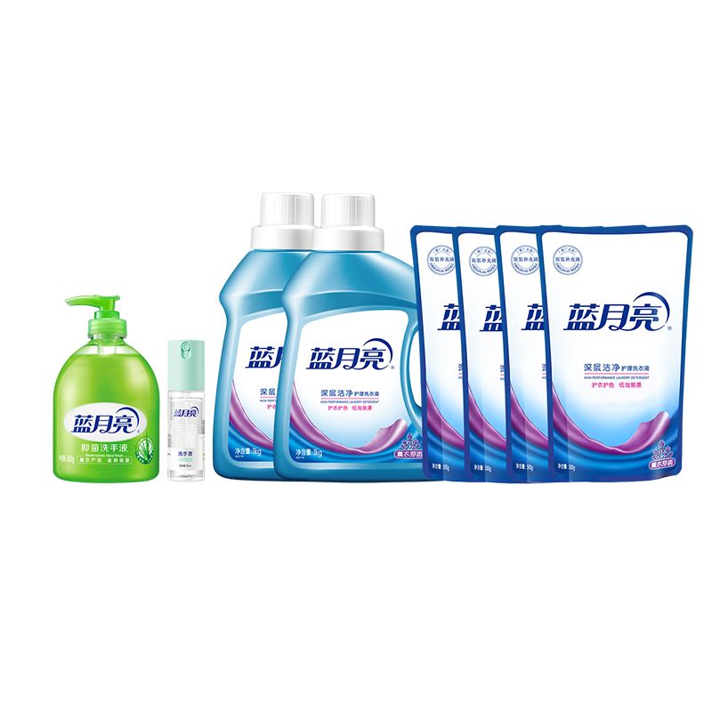 蓝月亮豪华大礼包洗衣1kg*2+500g*4+80g+色渍净600g*2+洗洁精1kg+油污净500g*2+洁厕500g
