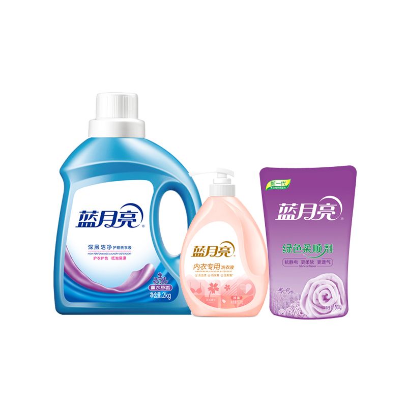 蓝月亮洁净柔顺实惠大礼包 洗衣液2kg+内衣洗500g+柔顺剂袋500g