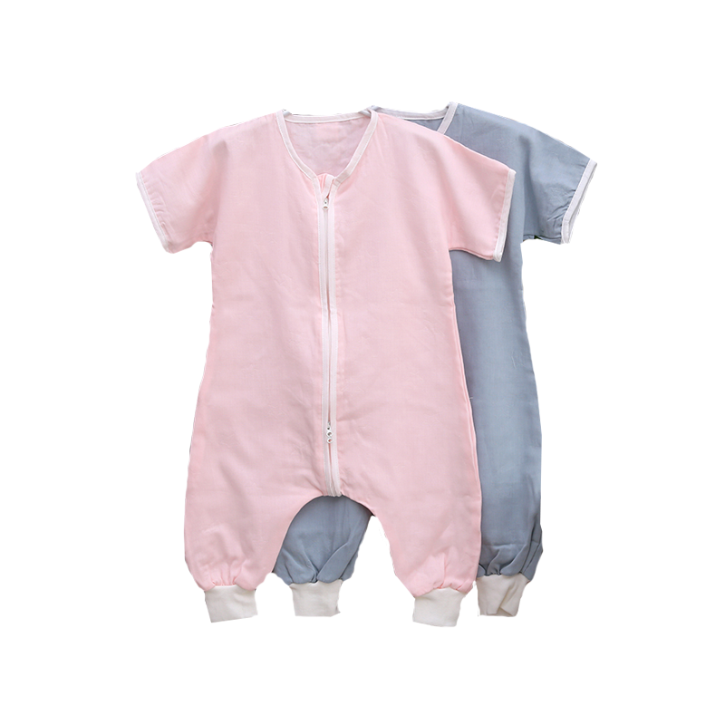 动感光波 草木染夏季双层纱布分腿睡袋薄款短袖