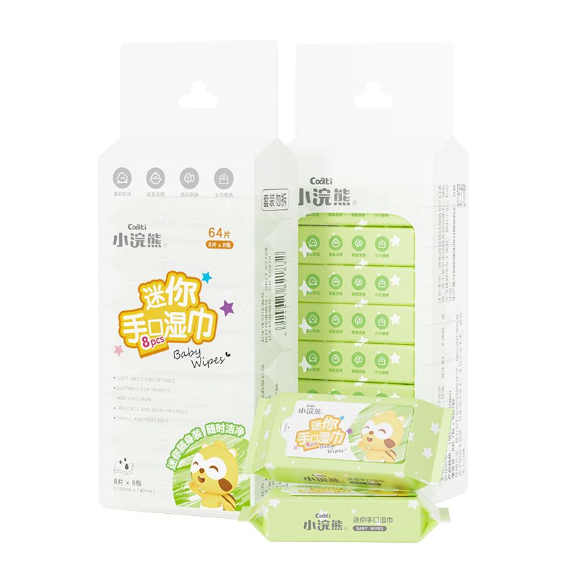 小浣熊迷你湿巾8片*8包*2组