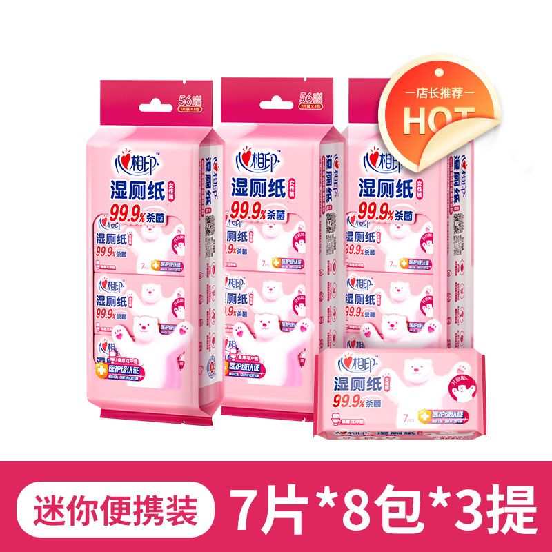 3XCY007+P2(提装)心相印湿厕纸系列女性7片装湿巾8包云熊22-1版3提装(共24包)