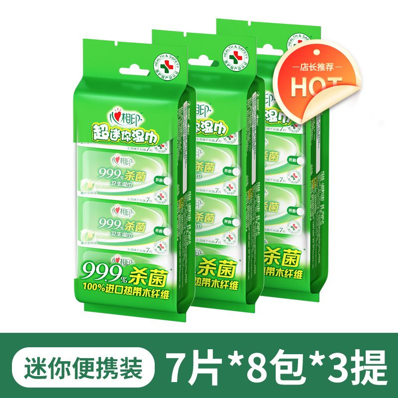 3XCA007+P1(提装)心相印湿巾卫生系列迷你型7片*8包*3提