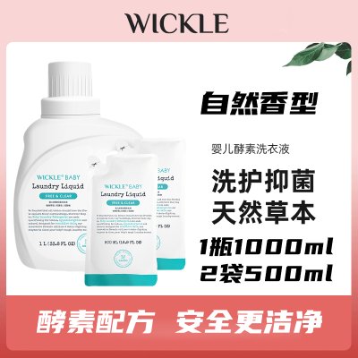 惟呵(wickle)宝宝专用去污抑菌酵素洗衣液(正装+替换装) 自然香 1L+500ml*2袋